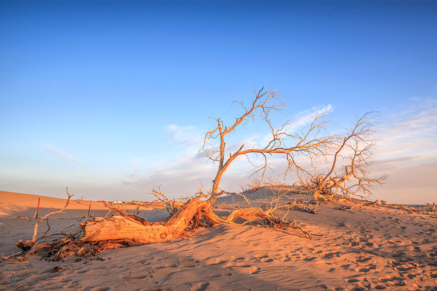 アルシャー盟は大陸性気候に属し、雨量が少なく乾燥しています。また、風が強く砂埃が頻繁に発生します。冬は寒いですが、夏は猛暑となり、年間平均気温は6~8℃ほどです。降水量は地域によって40㎜~200㎜となっており、総じて少雨であることが分かります。