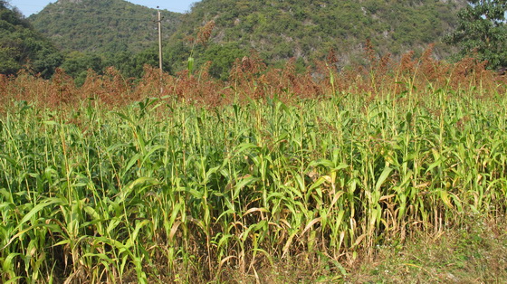 高粱を珍しく見えました。高粱は北方ではよく作られるものですが、南では高粱を植える事はめったにありません。北方の高粱よりだいぶ低くて、小さいです。何にするのでしょう、高粱酒を作るため、それとも家畜のえさ、よくわかりません。