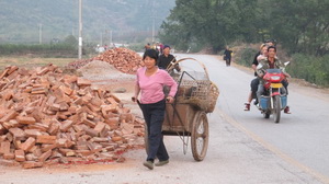 桂林潮田郷太平村を通る時、ヤンマーから下ろした肥料みたいなものを塵取りで運ぶ農家のおばさんに出会って声をかけて、言葉を交わしました。「施肥ですか。」「いいえ、買ってきた土です。」「え、土も買うんですか。」「そうです、今の時代なんでもお金がかかるのです。」「土を買って、何にするんですか。」「蜜柑を栽培します。」「お米は作らないですか。」「はい、儲からないから」「蜜柑は儲かるんですか」「はい、村のほかの人がよく儲かりました。それに、稲より手数も管理もかからないです。」「ああ、そうですか。お一人だけ仕事をするんですか」「はい、若い人は出稼ぎに行きました。残りは私たち年寄りだけです。」・・・