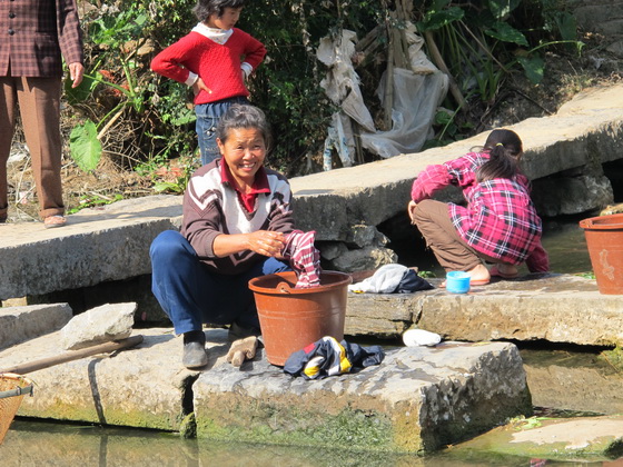 石橋を渡るとき、洗濯をしている朗らかで悩みのないおばさんに出会いました。