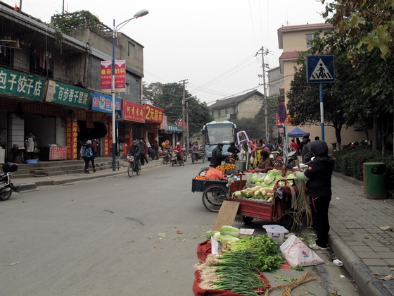 七星公園の北門を出るとすぐ「六合路」に来ました。ここは「六合早市」です。ここの露天は主にフルーツ、野菜、鶏などを売ります。管理費が要らないので、値段は自由市場よりも安いです。朝の運動がてらに買いに来る老人が多いです。桂林では今市場でよく売っているフルーツはサトウキビ、ザボン、金柑、オレンジ、蜜柑、バナナと北方から輸入して来た梨、リンゴなどがあります。