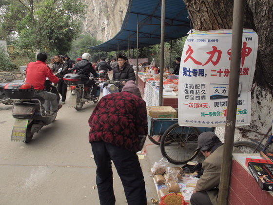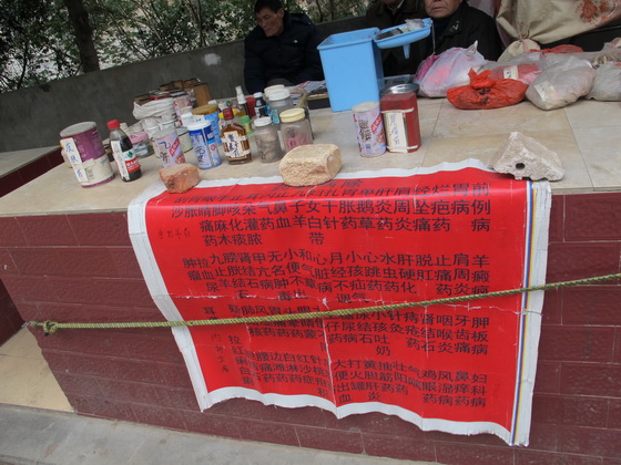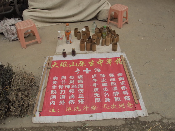 漢方薬の卸場ではいろんな薬を売っています。この薬を宣伝する看板を読んだら、面白いですよ。