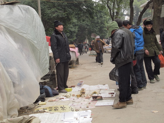 「飲んだら絶対効くよ」とこのおじさんは自信満々にお客さんに宣伝しています。
