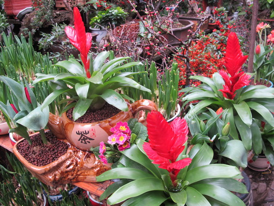 赤い「紅双喜」、チューリップ、水仙はそれぞれ好運と財との縁起があります。