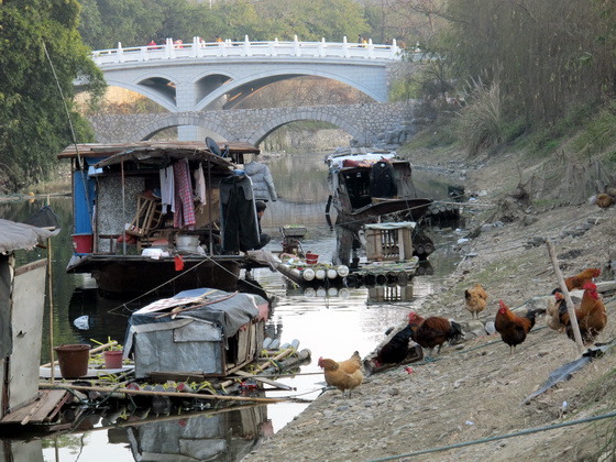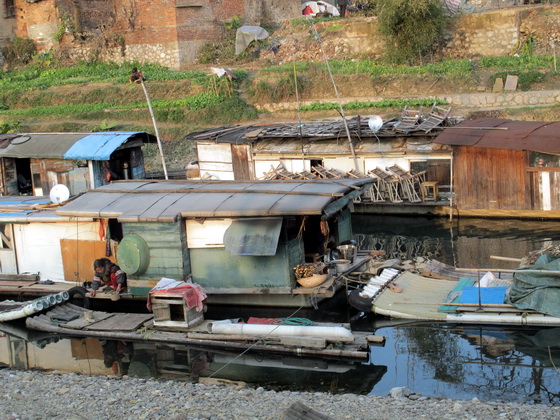 灕江の入江で思い掛けなく水上生活者の行方を発見しました。