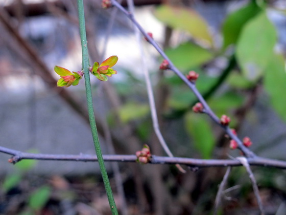 雨水の節気が過ぎると、天気が暖かくなりました。風が顔に当っても寒くなりません。耳も凍える感じがなくなりました。朝、屋上ガーデンに上がると、あれ、紅梅は小さい蕾が出たのではないかと驚きも喜びもしました。それから、隣の木海棠と黄梅も静かに蕾が膨らんでいました。春が来ました。春は私たちが知らないないうちに近寄っててきました。