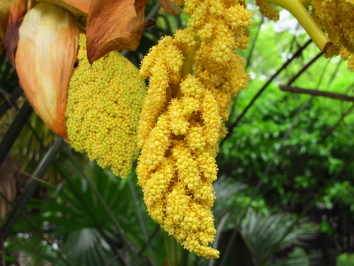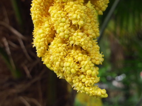 公園の入口に花の咲いた棕櫚の木を見ました。珍しいからその写真を撮りました。
