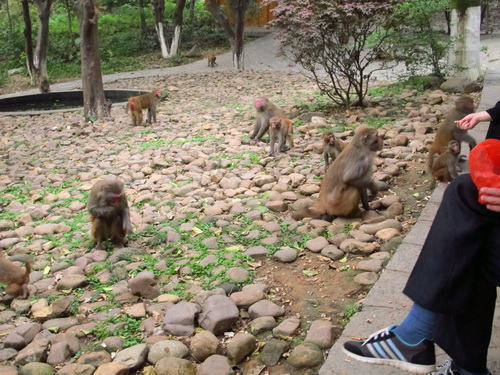 「月牙楼」へ行く途中「猿園」にちょっと寄りました。日本の大分高崎山自然動物園の野生の猿さんは有名ですが、七星公園の中の七星山にも野生の猿がいます。毎朝、ピーナツ、トウモロコシ、バナナなどを持ってきて、サルに餌をやりに来る人がよくいます。