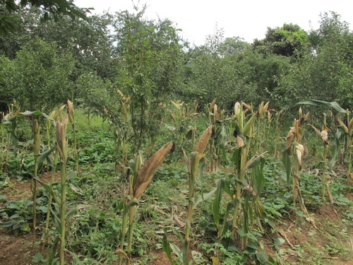 陽朔県にいますが、今度はわざわざ「永冨村」まで帰ってくださいました。お母さんは自産の西瓜と李でもてなしくださいました。唐さんの家は村のちょっと外れたところにあり、周りの景色はよくて、空気のなかに野原の特有ないい匂いが発散していました。私は西瓜を食べながら、周辺の様子を回ってきました。庭の中にナツメ、梨、桃の木が植えられ、木陰の下は鶏を飼っていました。家の裏に畑があり、トウモロコシ、サツマイモと野菜などが栽培されていました。井戸、柴屋と厠などの田舎しかないものをみて、田舎出身の私は懐かしく思われました。