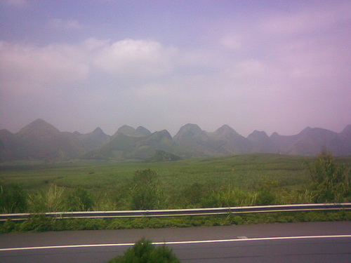広西の南部の景色は北部の桂林の景色とはちょっと違います。砂糖黍がよく栽培されていました。