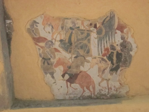 妙なことに、見る角度が変わると壁画のの中の馬と馬車の進行する方向もそれなりに変わります。