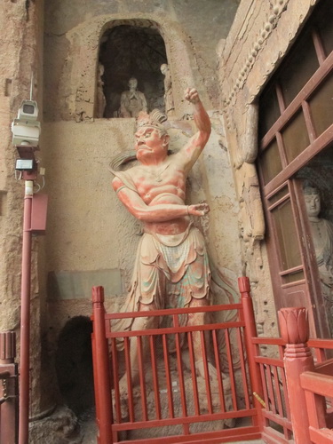 005洞窟の廊下に鉄製の仔牛の背中に立ってる天王の彫像があります。伝説によるとその牛は力の強い神様の牛で、 その牛が動く度に、地震が起こり、家が沢山潰れて今います。天水のあたりは地震が多いのはみんなその牛のせいだです。 地震が起こらないようにその天王がいつもあの仔牛の背中に立つようになっているそうです。