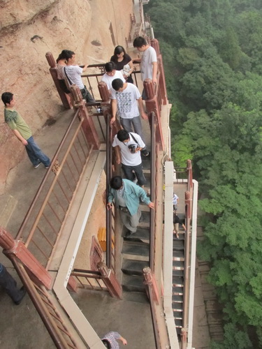 昔「麦積山」の桟道は狭くて、危ないので、上まで登って、見物する人は少なかったです。現在桟道は丈夫に修理されました。