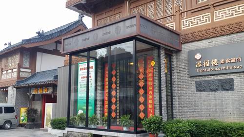 中山北路に近い木竜湖の湖畔に新しくオープンした精進料理の店は「添福楼」という看板が掛かっています