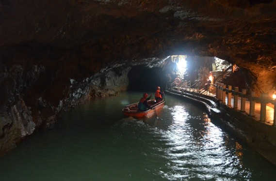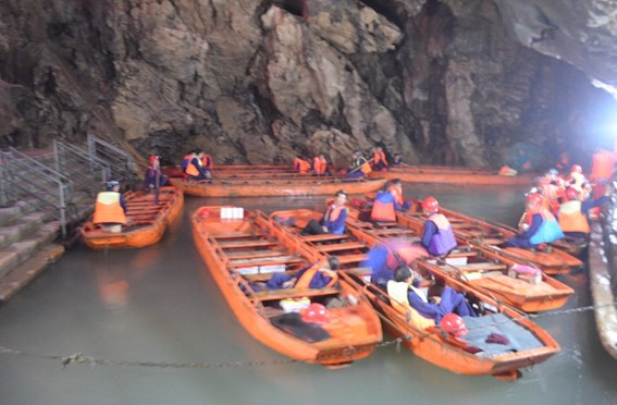 船で地下河の観光は実際ライトウップされていなく、電気さえつけていないです。ただ手元に置いてある小さい懐中電灯で道を照らしていくんです。