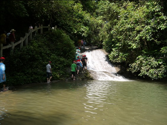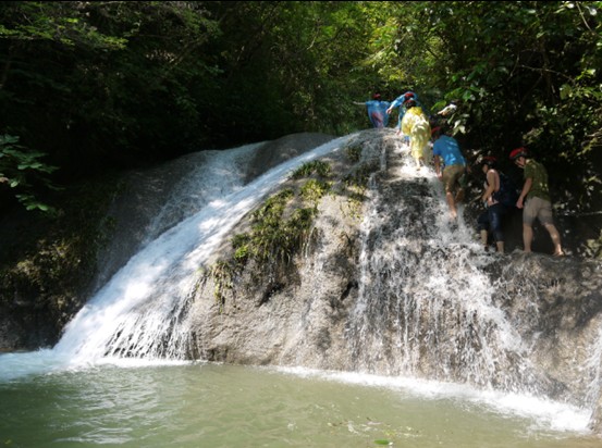 古東景勝地には地下から湧き出している泉が流れて、数階の繋いだ滝になっています。滝の水位は漓江の水位より180mも高くて、カルシウムと水の作用でまだ成長している滝であります。他の景勝地にある滝なら、ただ滝を眺めるだけで、ここの滝は登れます!キレイな空気を吸いながら、涼しい水を触れ滝を登るって実にいい体験です。