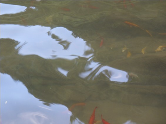 人が騒いだ滝の水たまりになんと魚がいます。