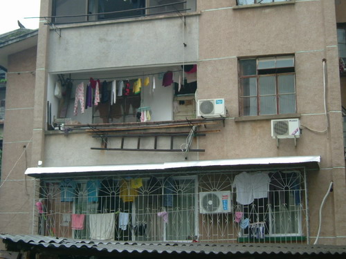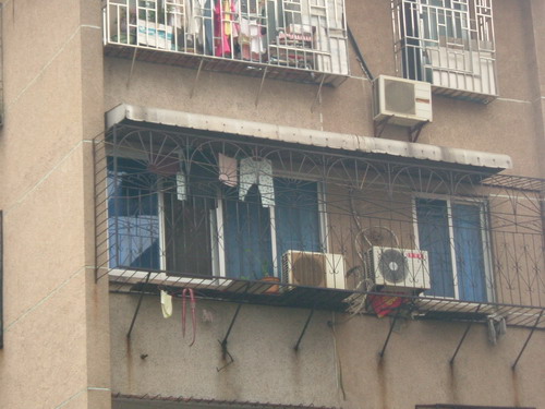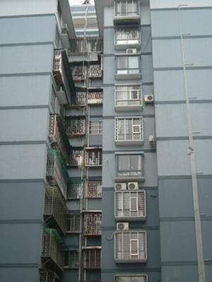 ご周知のとおり、中国では夫婦共稼ぎの家庭が多く、昼間のうち空き巣になったのが殆どです。実際、治安がそれほど悪いわけではないですが、この空き巣狙いがないように念のため、上記の防盗網を取り付けることになったようです。最初、アパートの一階に住む住民が先に、この種の防盗網を取り付けたかも知れなかったが、これを見た二階の住民がある程度、不安になり「一階の防盗網がまるで、はしごのようなもので、我が家が危険に晒され、なんとなく心配だよ」と考えるようになったが、一階の住民に抗議するわけにもいかないから、いっそのこと、同じような防盗網を取り付けた結果となったのです。このようにすると、空き巣狙いに対する不安がとうとう、上の三階、四階の方に広がり、結局アパートの一大景観そのものに発展したまでです。勿論、網を取り付ける群集心理もしからしめたことも認めないではいられないと思います。