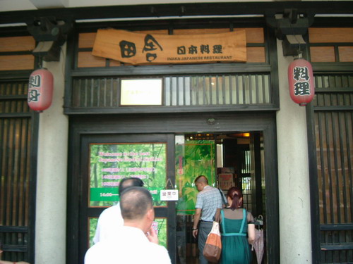 夕方、正陽路にある「田舎」という日本料理店に入ろうとする食べ客です。この店でもやはり、あらかじめ予約する必要があるぐらい商売がいいそうです。