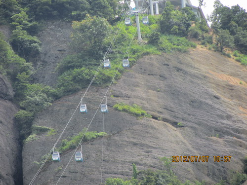 かなり傾斜の激しい岩盤にしっかりと取り付けたケーブルカーが小さく見えました。最新の観光施設の導入は観光客の増加に拍車を掛けるに違いないでしょう。