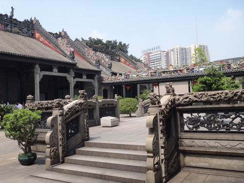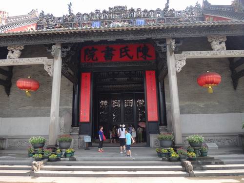 広州の陳氏書院は陳家祠とも呼ばれており、広州市中山七路にあり、地下鉄の2号線で直接「陳家祠」駅で降りればよろしいです。アクセスが大変便利です。陳氏書院は清の光緒年間(1890年)に工事を始め、1894年に約4年掛かりで完成させたものでした。当時、広東省72県の各地に住んでいた陳という名字の一族が寄付により共同の先祖祭祀に使う場所として、出資して建てたものでした。一部の部屋が生徒の勉強のために使われたことがあることから陳氏書院とよばれました。敷地面積が延べ15000平方メートルもある陳氏書院は広東省でも中国でも豪華な伝統的工芸技術を施し完成させた点において比類できるものがないとして国の重要文化財にも指定されています。また広東省の民間芸術館とも呼ばれています。現在、「羊城(広州の別名)の八景」の一つと数えられ、広州市内の観光には欠かせない人気ポイントとなっています。