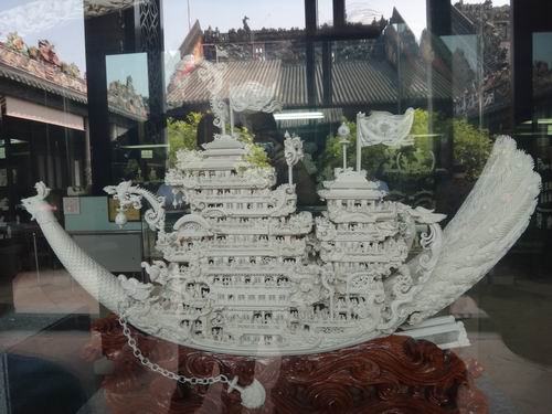 象牙の工芸品などで鏤めた鳳凰の船に、迫力が満載ですね。