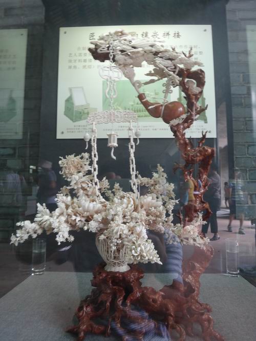 書院の「聚賢堂」に関東省各地から選ばれた工芸品の展示が行われています。広東省の各地の人間国宝で造ったこられの作品が書院の名誉にマッチするほど立派なものが多いです。