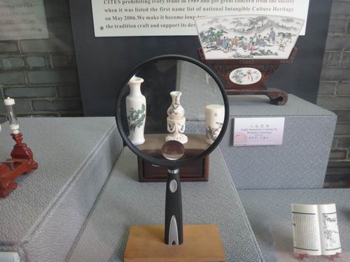 「微彫」(図案をできるだけ小さくして彫る工芸)で彫刻した壷は拡大鏡を通さないと見えないぐらいです。中國伝統工芸の一絶と称えられています。