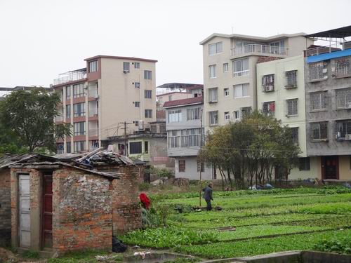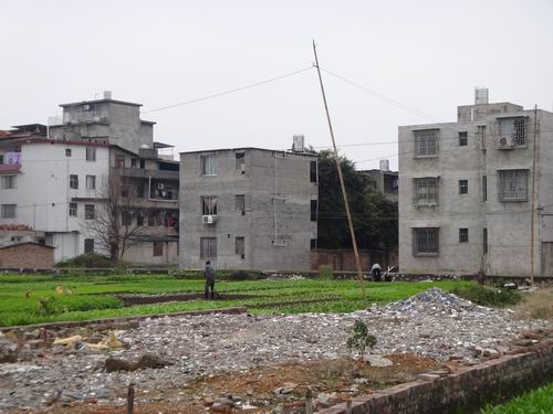都市部の拡張につれ、町の周辺部の農家は野菜田圃が狭くなり、農業だけではもう食い上げの恐れが出ましたが、農地の買い付け、農民を立ち退きさせる費用は地価などの高騰でさすがの不動産屋さんでも手が出ません。中国はこのような町の開発を遅らせる「城中村」がたくさん残っています。