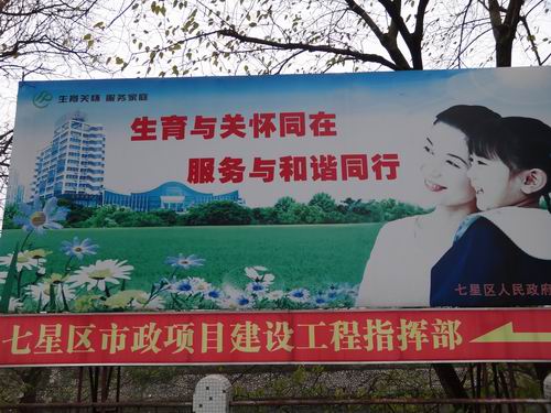 桂林市の七星区にある産児制限を管理するサービスステーションに飾っているポスターであり、政府が産児制限の宣伝に大量の資金の投入にやぶさかではないです。