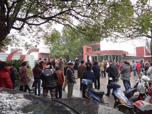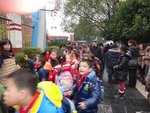 「家庭の小皇帝」と言われる一人っこの子どもはいよいよ学校が終わります。その前に保護者たちが既に玄関に集まってきました。中に定年退職の祖父母も多いようです。