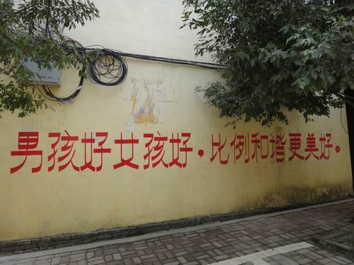 桂林の田舎では、壁に「男の子もよかろう、女の子もよかろう比例的に調和が取れれば更によかろう」の宣伝用語が書いてあります