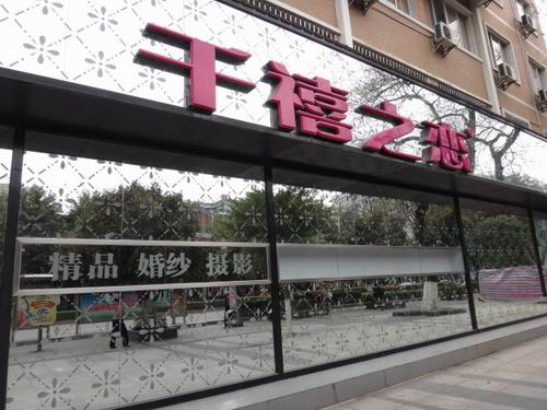 桂林の解放西路にまた結婚の一連のビジネスを取り仕切る会社が出店しています。話によると新暦や旧暦の偶数に重ねる土、日になると仕事が多くて捌き切れないと言います。