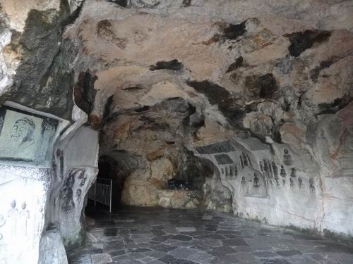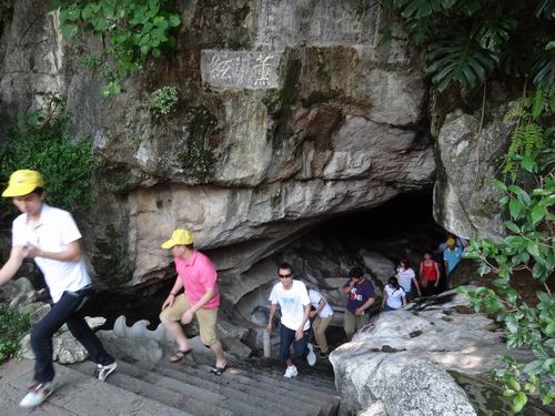 桂林という町は一つ不思議なことに山があれば必ずと言っていいほど鍾乳洞があると言われます。それに景観が珍しい鍾乳洞も多いわけです。今まで見つかった鍾乳洞がなんと400以上もあるという統計があります。いくら真夏で暑いからと言ってこれほどの鍾乳洞のおかげでだいぶ救われます。中でそのまま観光地として利用される鍾乳洞(たとえば芦笛岩や七星岩など)もあれば、古くから伝統文化のキャリアとして開発された所(たとえば七星公園の桂海碑林や畳彩山の風洞など)もあります。このパタンの鍾乳洞と言えば枚挙にいとまがないようです。桂林市内に限らないで桂林周辺にもたくさん分布すると言えます。更によく見れば仏教文化と縁が結ばれた鍾乳洞(伏波山の環珠洞や七星山の普陀岩)もあれば道教や儒教などと関係が結ばれた鍾乳洞(畳彩山の太極洞や南渓山の劉仙岩)もあります。真夏の桂林は外の気温が普通30度台であるのに対して、鍾乳洞の中に入るといきなり20度ほどに下がるから気持ちが爽やかになり助かります。これは真夏の桂林ならではの醍醐味ではないでしょうか。