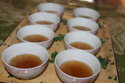 ほかにも、灌陽では女性が暇なときに三々五々集まって油茶を飲みます。この瞬間は油茶を飲みながら心身ともにリラックスして、ご近所付き合いと親睦を深める大切な交流手段になっています。