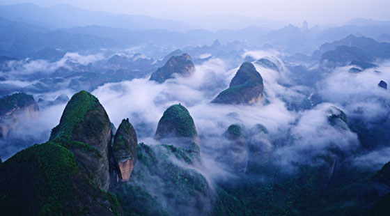 下から見上げると大きな一枚岩、というより山といったほうが近いです。その尾根に人々の登る姿が、巨大な像の背中を這う蟻の列のように見えます。登りきった場所からは、いくつもの山が背中を丸めた象のよう折り重なって見えます。壮大な自然の造形美には息を呑むばかりです。巨大な岩と岩の重なり合った隙間を抜け、谷を渡り、まるで探検隊のようです。百聞は一見にしかず、この地質学的にも貴重な場所を一度体験してみてください。桂林の山水画のような風景とは一味違う、ダイナミックな自然美が堪能できるはずです。