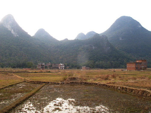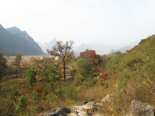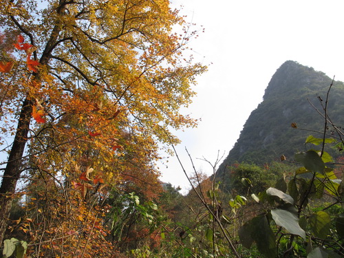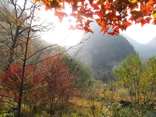 冬至が過ぎた後、厳しい冬に入りましたが、桂林では小春日和の日が続き、また紅葉を鑑賞するいい季節になってきました。12月29日(日曜日)、友達を誘って、桂林市郊外の霊川県霊田郷へハイキングに見に行きました。