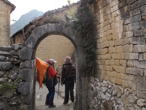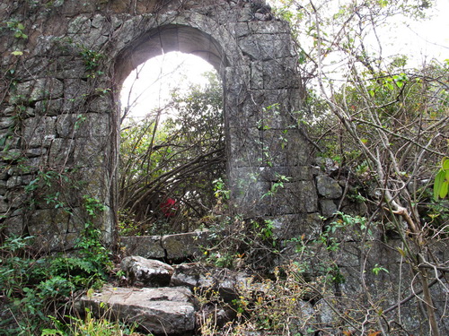 烏茅嶺は茅が生茂っているのでその名があったわけです。かつて賑やかだった古道は歩く人が少なくなったので、荊が生い茂るようになって、歩きにくくなりました。約一時間半歩いて、石の門が見えてきました。そこを潜って頭を持ち上げると、木の茂みに立派な石造りの建物が目の前に現れてきました...... (続く)