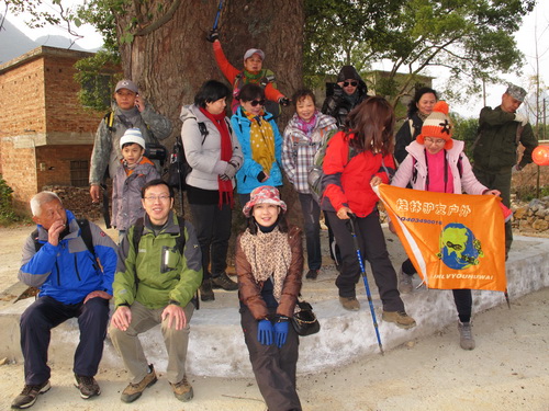 朝8:30、私たち一行十数人が南城百貨デパートの前に集まり、バスに乗って出発しました。9:20、霊田郷輦田尾村に着きました。村の出入り口に200年樹齢の大きな樟の木がありました。みんながその大きい木の下で集合写真を撮ってからハイキングし始まりました。村の人が野良仕事に行ったのかそれとも出稼ぎに行ったか、とても静かで、あまり人には出会いませんでした。一戸の家が戸が開いていましたが、一人もいませんでした。その家の飾り付けは私が子供の時の家と同じなので懐かしかったです。村を出た所、古い井戸がありました。井戸の縁にある深い紐の引き痕があったので相当の歴史があるでしょう。その横に斜めになった老いた檜が一本あり、じっとその井戸を伴って滄桑たる歳月を過ごしてきました。