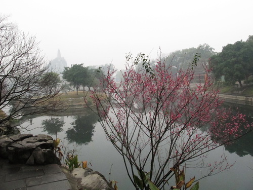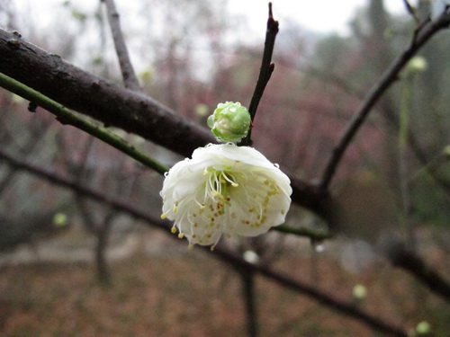 昔から中国の文人たちは寒い風雪を凌ぐ氷雪の梅を気高いシンボルに喩えて賛美してきました。梅がどんなに厳しい所でも生長できて、謙遜、堅忍不抜、根気強い中華民族の品性によく合うので、中華民国の国花に定められました。こう見たら、寒がり屋の私はどうしても高品な人間にはなれないなと思いますね。写真を思う存分に撮った後、そろそろ帰る時間になりました。ふと、目の前に咲き匂ったこれらの可憐な花が咲いたり、散ったして、到底、地面に舞い落ちて、泥に化する輪廻に逃れないと思うと思わず胸が痛くて、寂しくなりました。それから宋代の詩人陸遊(私と同じ名前の人)の「卜算子‧咏梅」の「無意苦爭春、一任群芳妒。零落成泥碾作塵、只有香如故。」(ひたすら春を争う意無く、一切群芳の妬むに任まかす。たとえ零落して泥と成ったり碾(ひ)かれて塵となったりしても、只だ香は故(もと)の如し。)という詩を詠むと人間だって同じことではないでしょうかと釈然しました。
