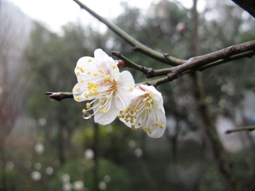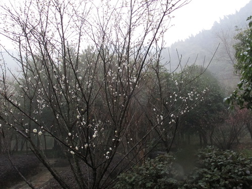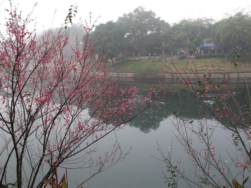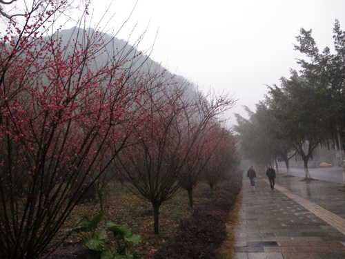 最近、桂林では異常だと言われる暖かい天気が続いて来ました。天気予報によると今日の最高気温が23℃になるそうです。穿山の麓の梅の花が例年より一か月以上も早く満開しました。このまま行くと今年の冬が早く終わるかもしれません。暖冬は寒がり屋の私には嬉しいことですが、来年の農業生産には不利だから、やはり農家にいいように少し寒くなるようとお祈りします。