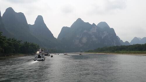 桂林観光に来るならば、船で有名な漓江下りのコースをすると必ず「九馬画山」と言われたポイントが見えます。その時、ガイドさんは必ず興味津々に観光客のあなたに「九馬画山」についての説明をしてくれます。見れば船の前にほかの山と隣接した一枚の切り崩した岩石がほぼ90度の角度で聳えている山があります。この岩石の表面に白黒の模様が交錯しているのが分かります。ざっと見ればこれはただの雨に濡れて白黒に変色したものではなかろうか。ところがガイドさんの説明に耳を傾けると全く話が違います。「皆さん、よく想像してみてください。白色の模様を馬に想像すればよろしいですよ。よく数えてみれば九匹が見えます」と言ってくれます。「九」という数字は中国では縁起のいい数字であるうえ、「馬」という家畜も農耕や運搬に使えるばかりではなく、「馬到成功」(馬が至れば成功を収める)といったようなプラスの意味として理解される場合が多いようです。
