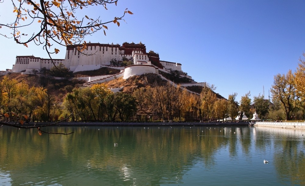 ポタラ宮龍王潭で好天を楽しんでいる鳥たち