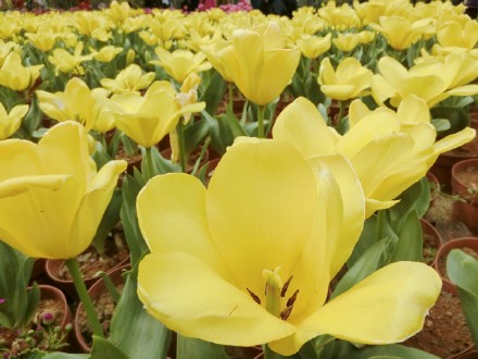 2014年3月に、主席の習近平と奥さんの彭麗媛がオランダを訪問した時、オランダチューリップ展に出ました。国の繁栄と国民の安泰を祈ろうと思い、彭麗媛はオランダクイーンからもらった新品種のチューリップを「国泰」と名づけました。2015年から全国各地でチューリップ展が開催され、今年はオランダからまず800本の「国泰」が発送され、山々を超え北京に到着してから、全国各地で展示されています。