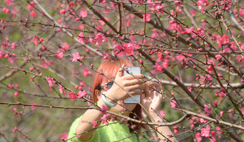美しい桃の花を楽しんだり、記念写真を撮ったり、みんなでワイワイしながらピックニックしたりし、桃の花が咲いている所は人でいっぱいになっています。