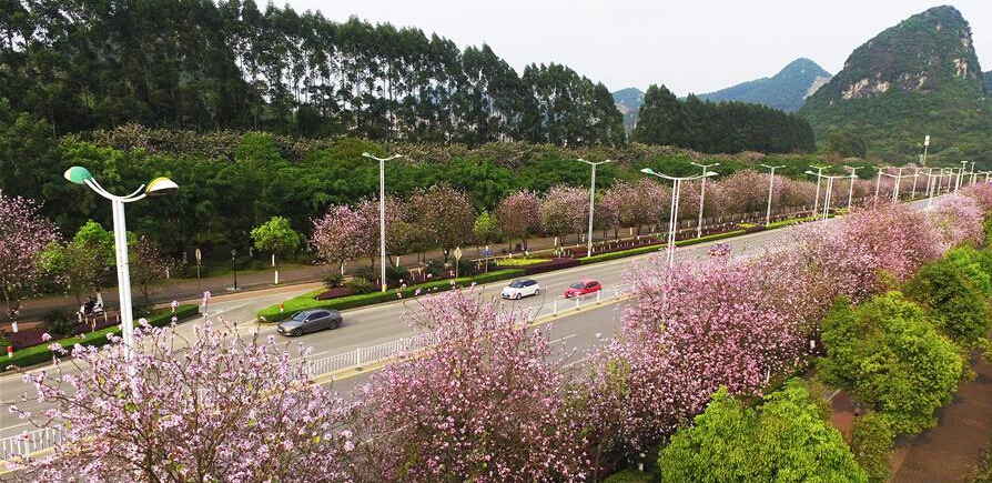 4月に入り、清明節ごろ、広西省柳州市に24万本のバウヒニアが満開し、柳州の町はバウヒニアに溢れ、まるで花の海になっています。