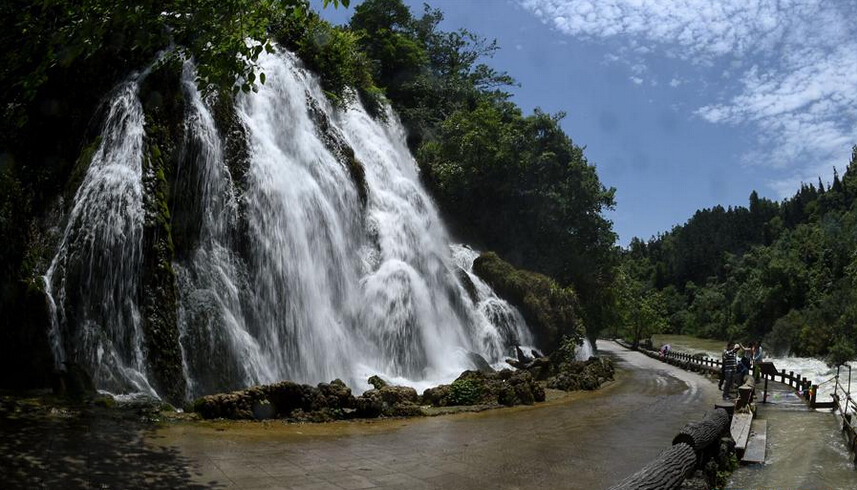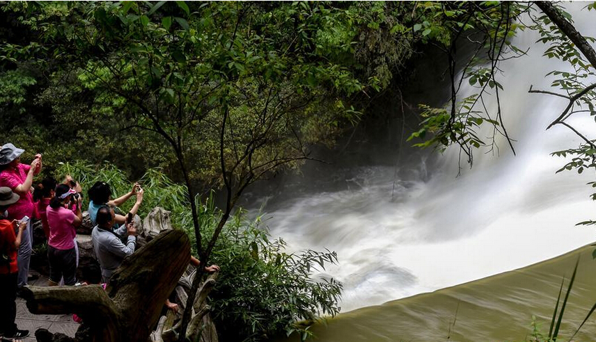 連日の降水で、世界自然遺産の貴州省茘波大・小七穴風景区は豊水期に入り、観光スポットの中の滝、河の水量が大幅に増えています。