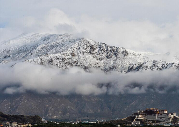 雪山の元にある世界文化遺産のポタラ宮は、より一層壮観なものになっていて、まさに絵のようです。(新華ネットチベット)