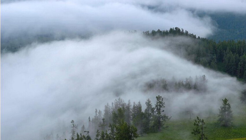 6、7月に喀纳斯山区は雨が多く、観光区内の木も多いことで、水の蒸発はかなり早くなっています。太陽が出てくると、温度の変化によって水蒸気は雲になり、雲海へ形成していきます。