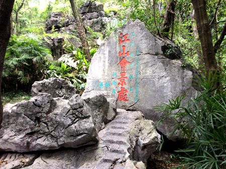 ガイドの時、畳彩山を何百回も見物したことがありますが、今回旧遊して、疎い感があり、感無量でした。岩には石刻がたくさんあり、年月が経って、風化され、ほとんど字が見えなくなっている状況でした。結局は色が付けられた名人の詩画や目立った所にある深く刻まれた字しか見られませんでした。それは人間社会も同じことでしょう。